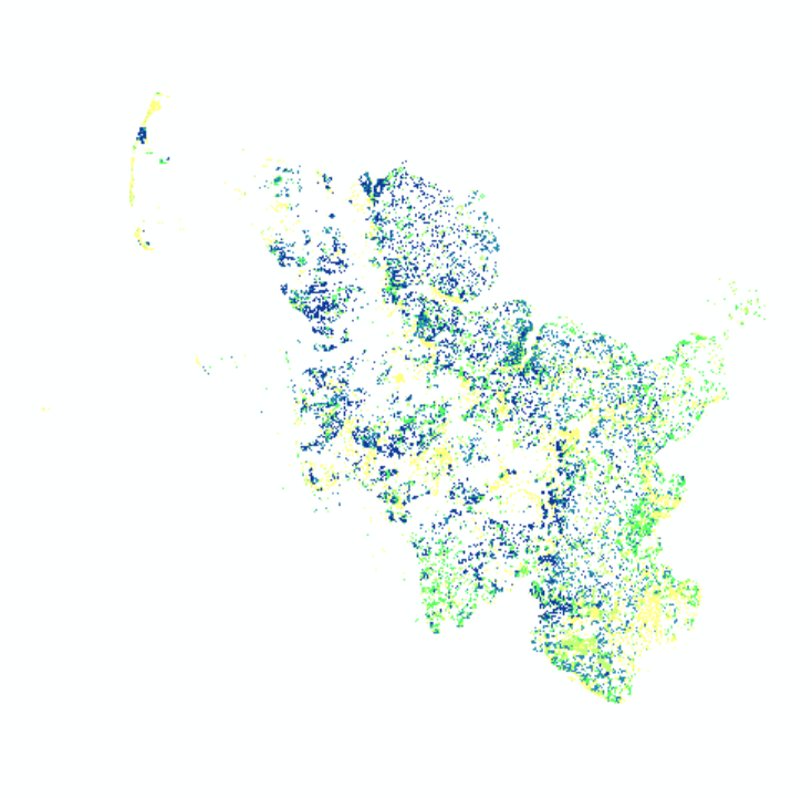 Mittlerer jährlicher natürlicher Zwischenabfluss (1971-2000) für Schleswig-Holstein in mm/a und mit einer räumlichen Auflösung von 100 m x 100 m. Zur Bildung von natürlichem Zwischenabfluss kommt es dort, wo das Sickerwasser vor Erreichen des Grundwasserleiters eine wasserundurchlässige Schicht erreicht, so dass es lateral in der ungesättigten Zone abfließt bis es ein Oberflächengewässer erreicht. Dieser Zwischenabfluss entsteht nur auf Flächen, die nicht künstlich entwässert sind.
